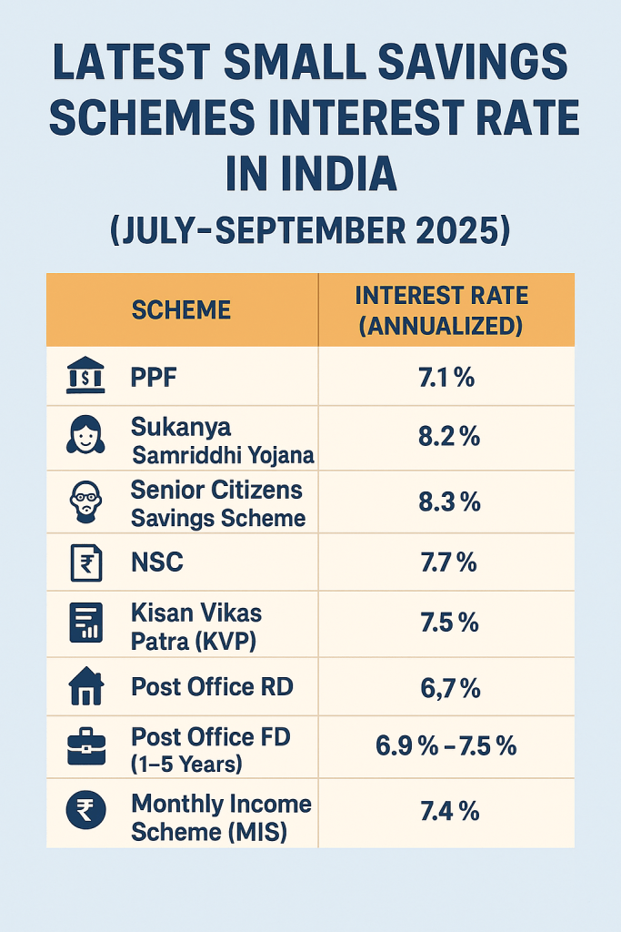 Here’s a full list of latest interest rates (July–September 2025) for all small savings schemes.